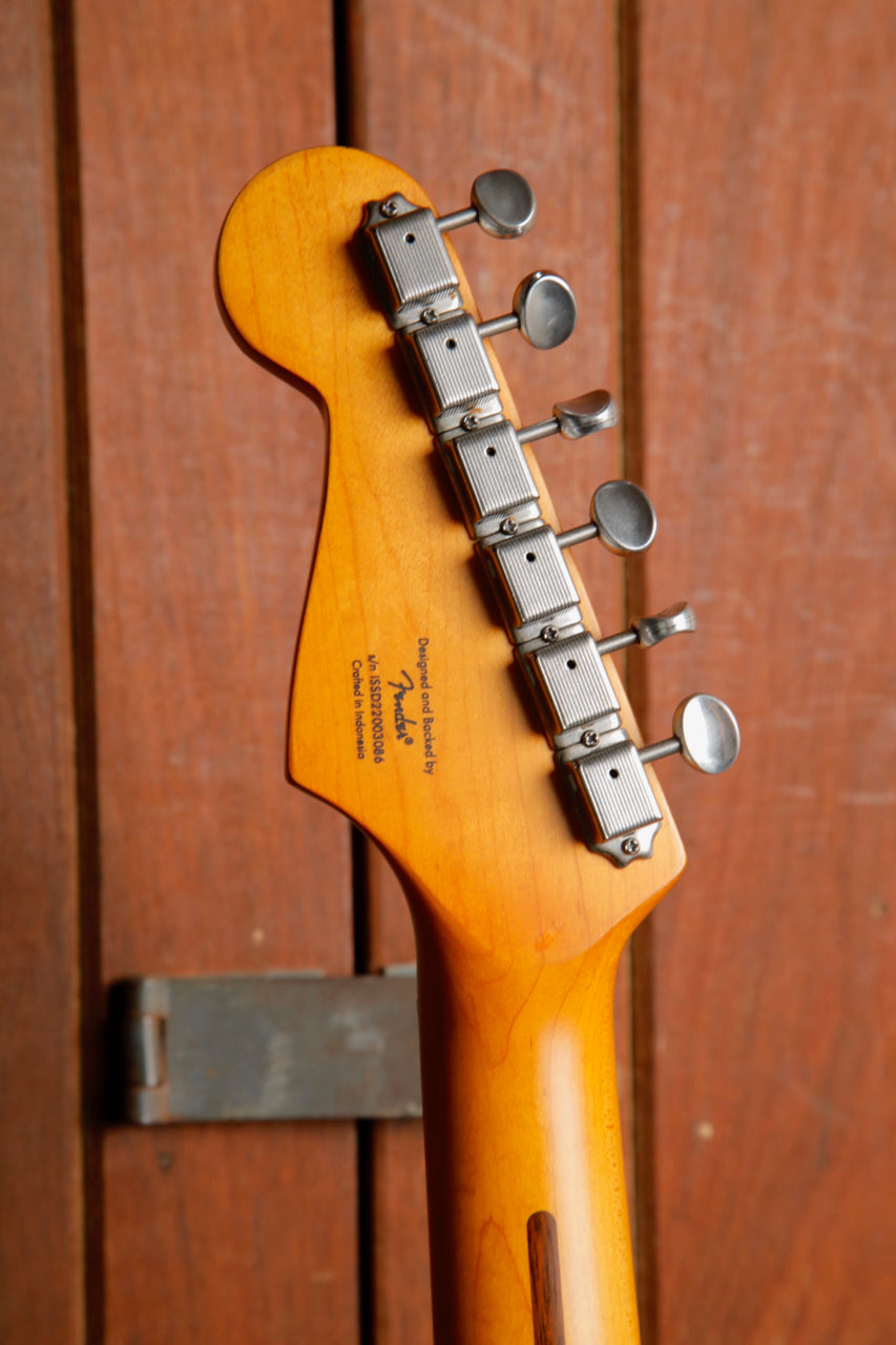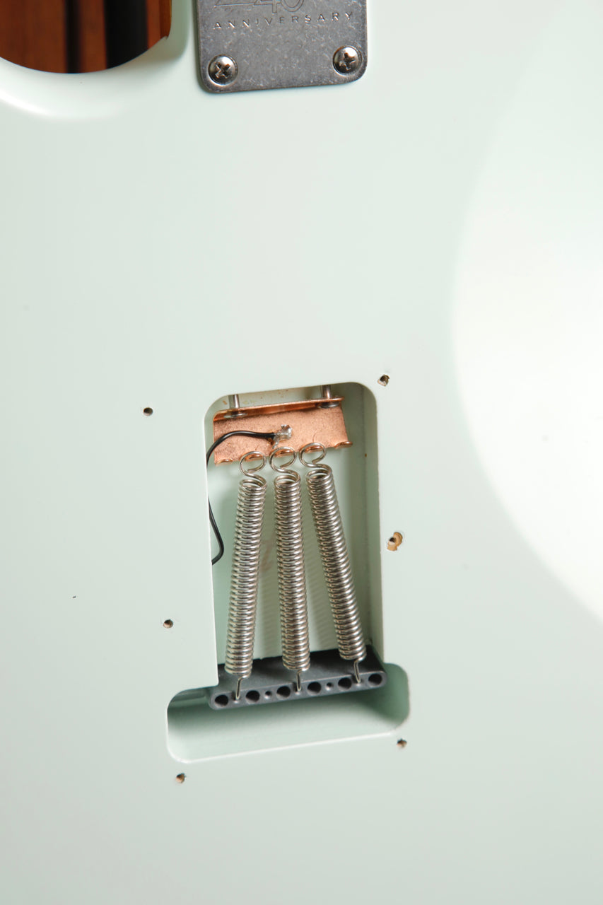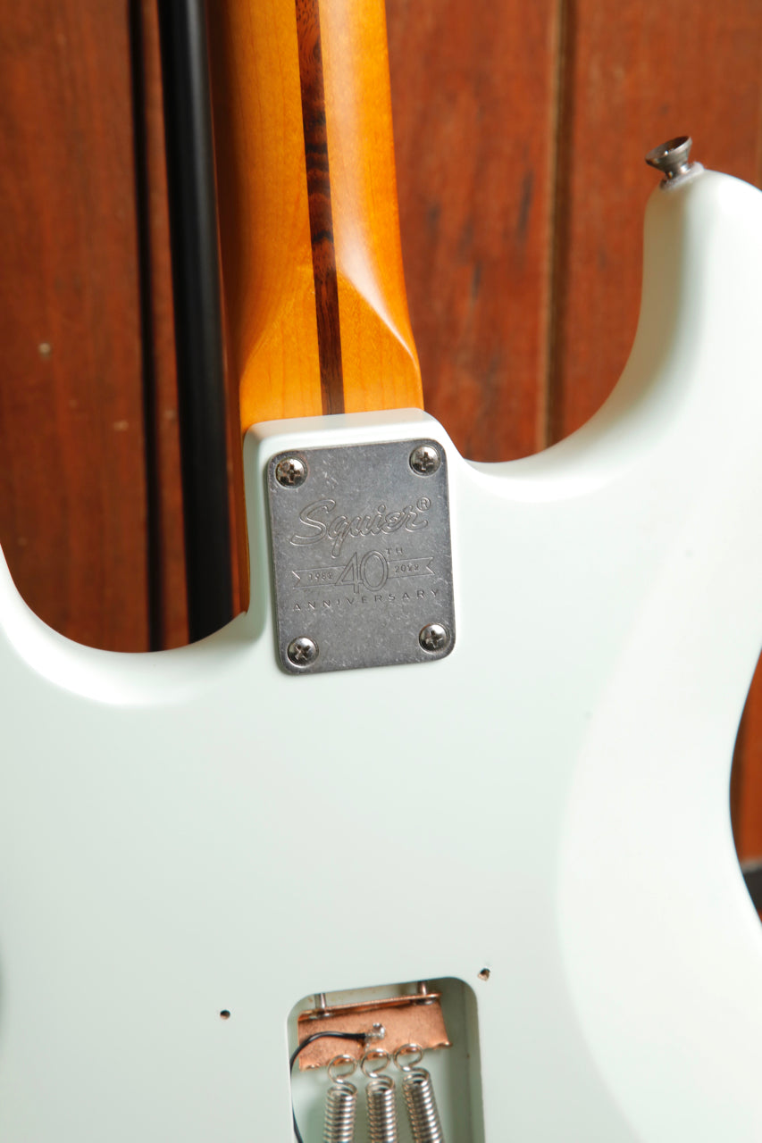 The Squier® 40th Anniversary Stratocaster®, Vintage Edition is a soulful tribute model trimmed with a collection of classic features for the retro-minded Squier enthusiast. Featuring aged chrome hardware, a vintage-tinted maple neck, an engraved anniversary neck plate and satin finish throughout, this Strat® honors the heritage of the Squier catalog and its ancestry. Player-friendly refinements of this commemorative model include a slim and comfortable "C"-shaped neck profile for an easy playing feel, vintage-style tuning machines and 6-saddle synchronized tremolo bridge for authentic performance and style, and Fender-Designed single-coil pickups with alnico 5 magnets for familiar Strat tone.