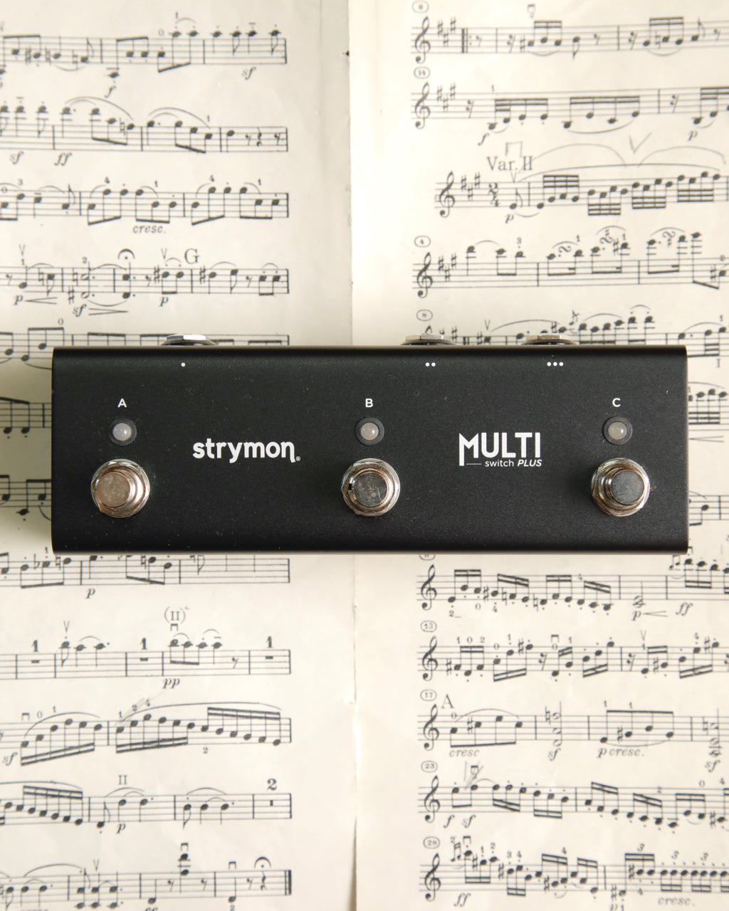 MultiSwitch Plus can be configured in several different ways to extend floor control of compatible Strymon pedals. Depending on the selected mode and the pedals connected, you can recall presets, change banks, operate TimeLine’s looper, remotely tap tempos, and more. See compatibility chartbelow.