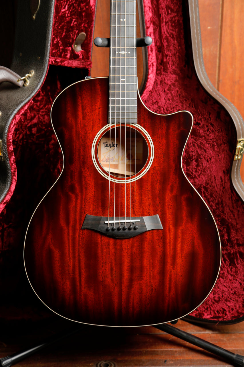Here's a great sounding Taylor Acoustic-Electric! This Taylor 524ce features all-solid mahogany construction with V-Class bracing which results in lovely midrange punch and great projection.