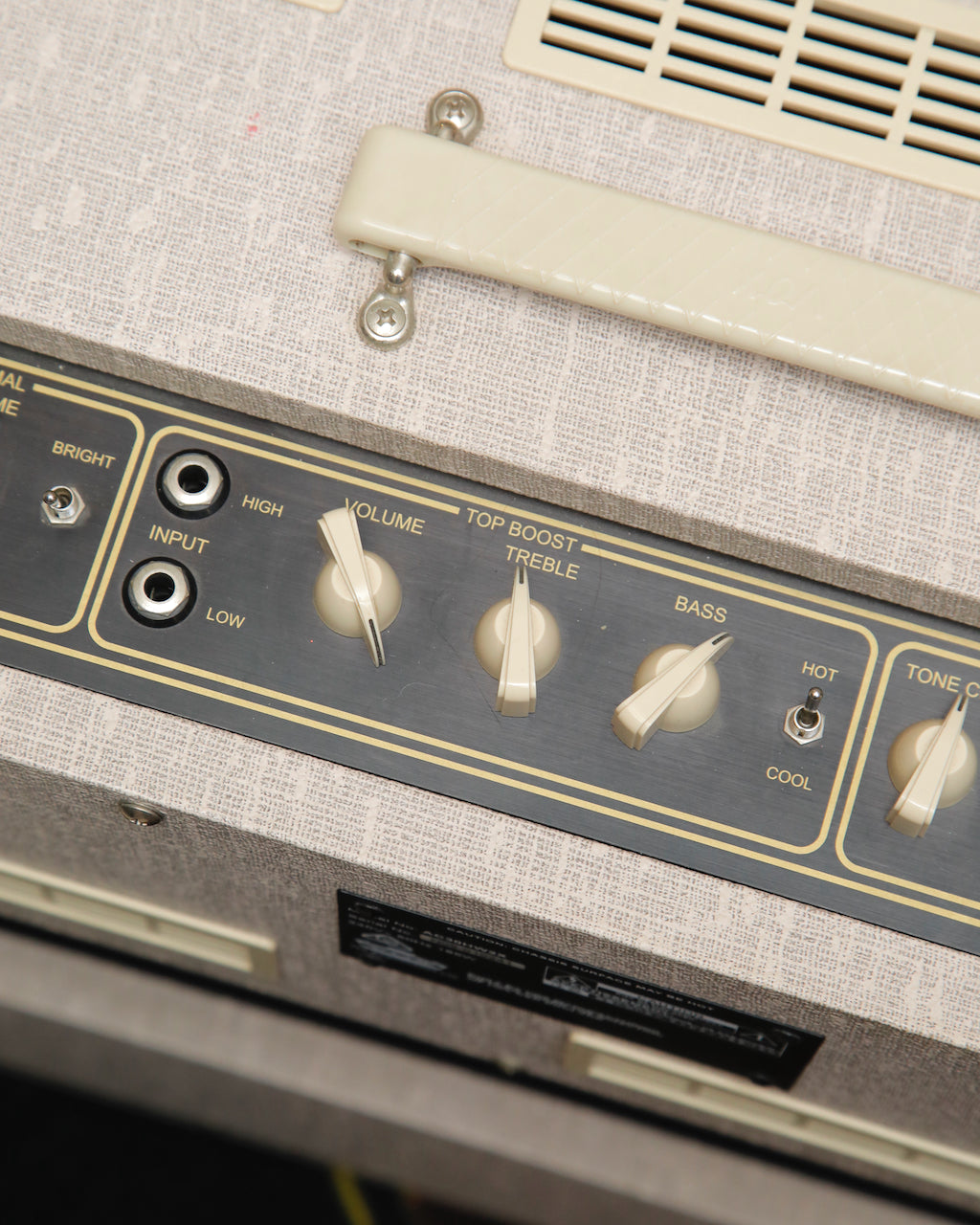 The amplifier has 2-channels with High and Low inputs for each channel and the Top Boost channel provides a HOT/COOL switch to achieve even more gain.