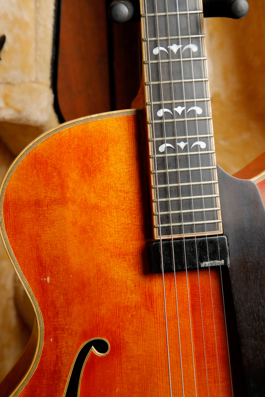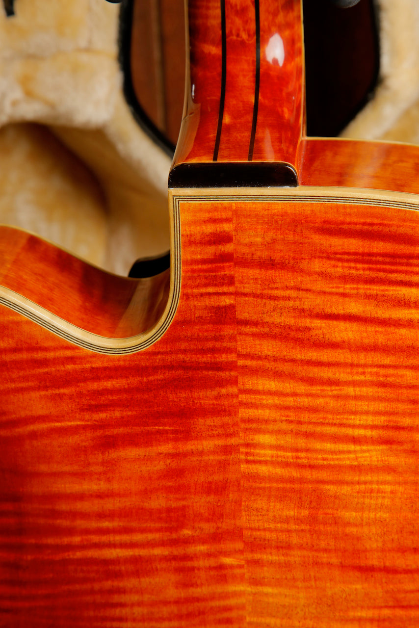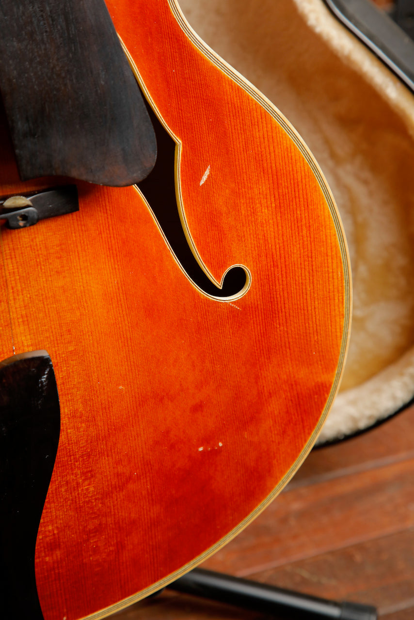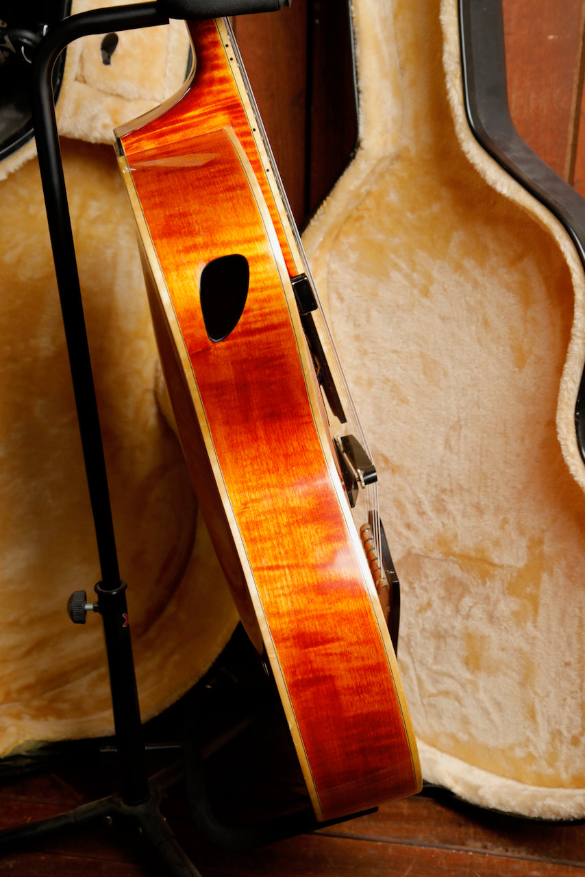 Pre-owned in very good condition, this Yunzhi 17" Archtop is a nicely crafted hollowbody electric. This guitar features a spruce top,flame maple back & sides and a solid ebony tailpiece, pickguard and fretboard.