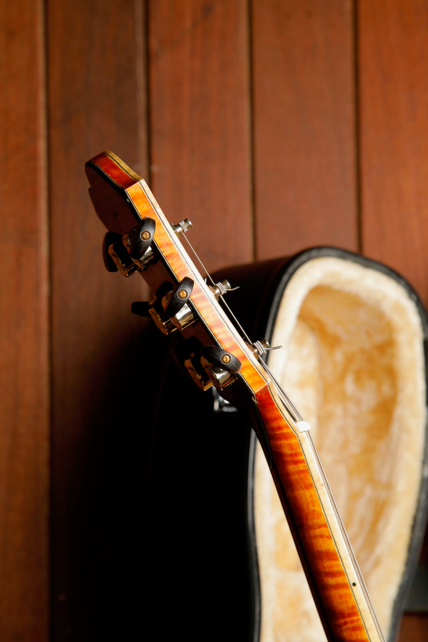 A very neat hollowbody with quality tonewoods. Comes with a hardshell case.
