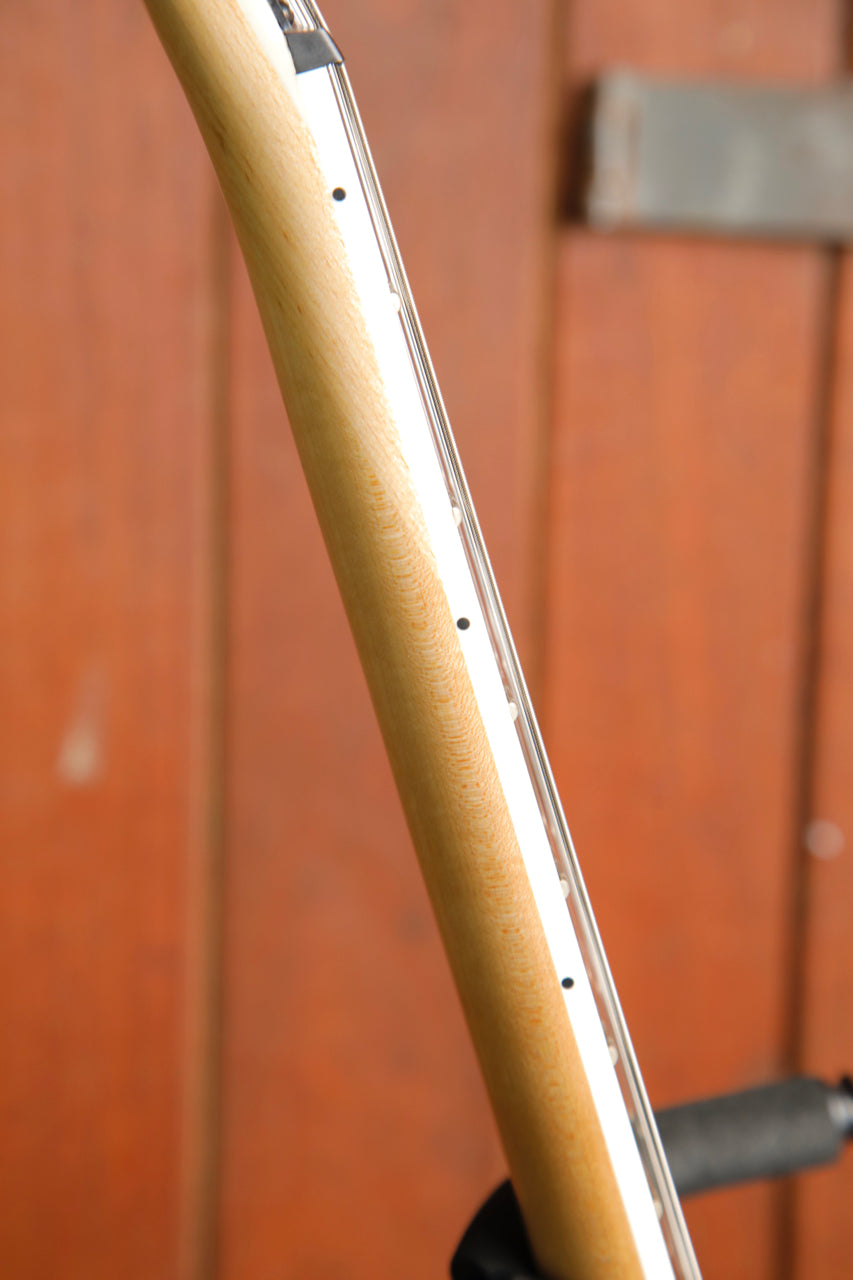 This guitar shows some signs of wear and age with a few small dings on the top as pictured. The frets are in great condition with only a small amount of wear as pictured.