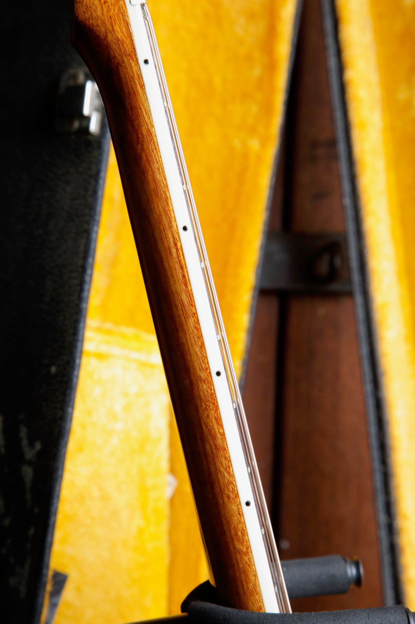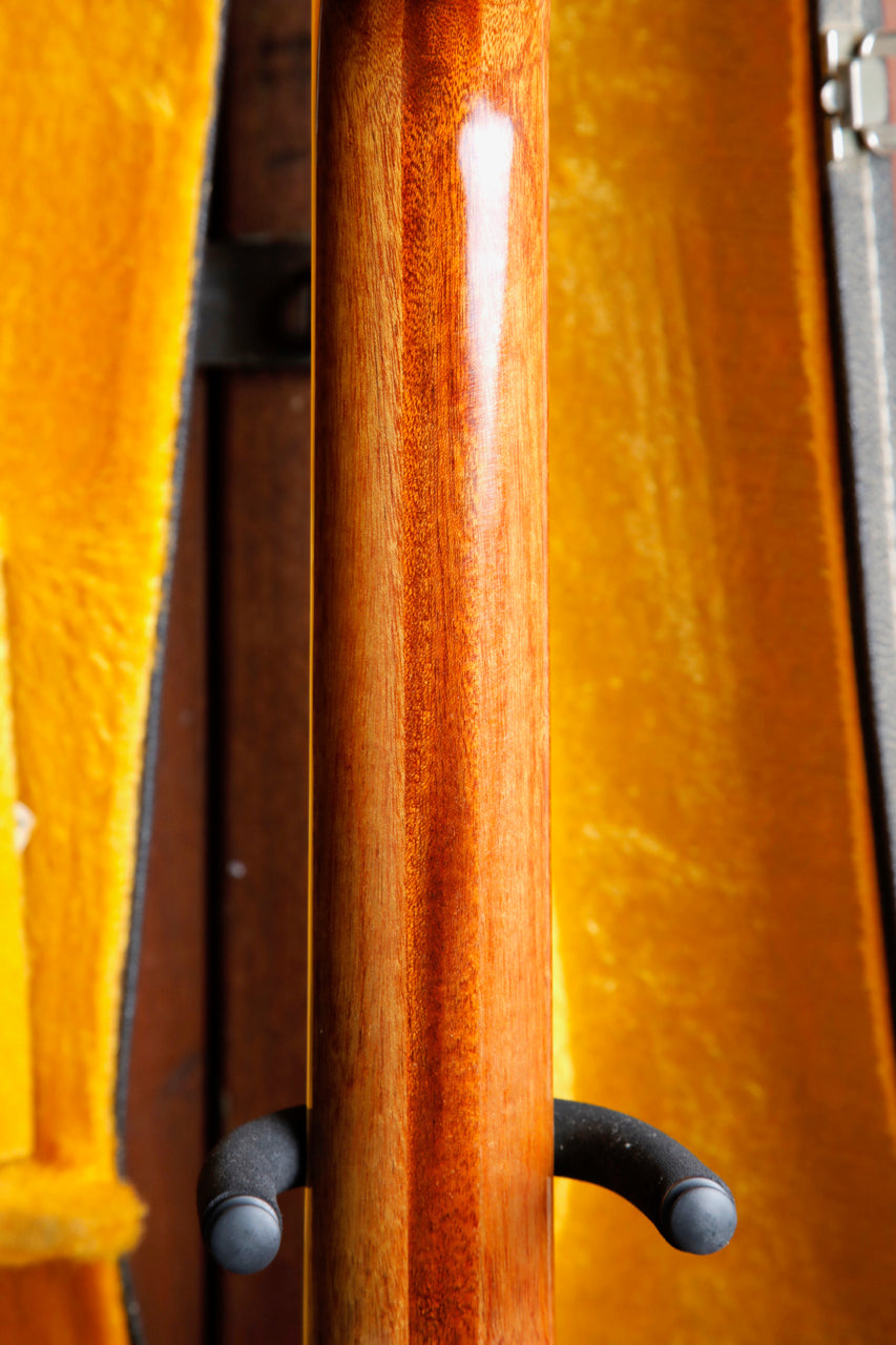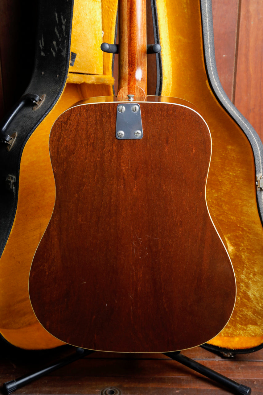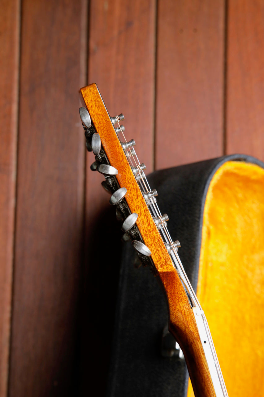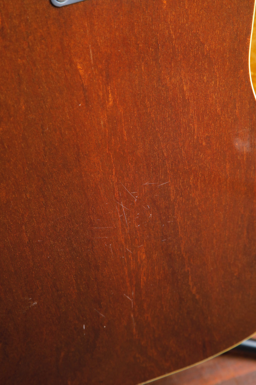 Due to the high stresses of the 12 strings on the guitar, it's very common to see the bridge 'lifting' (separating from the body), or a re-glued bridge (which is preferable, as it 'future proofs' the guitar from damage later on). This guitar looks to have had the bridge professionally re-glued at some point, which on a vintage 12-string guitar, is great news for the next owner.