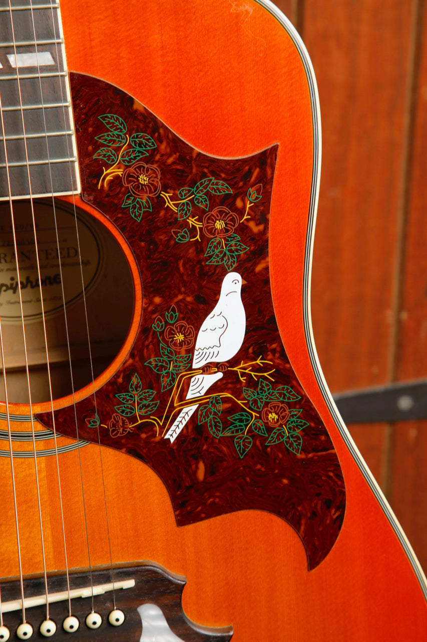 The classic Dove style acoustic first introduced at the legendary Gibson and Epiphone factory in Kalamazoo in 1962 became one of the first acoustic guitars to become a recognized rock and roll icon. Now, both beginners and professionals can enjoy the classic sound of The Dove plugged in with the Fishman™ Sonitone™ soundhole preamp and Fishman™ Sonicore™ pickup system, designed and built with the integrity you expect from Epiphone.