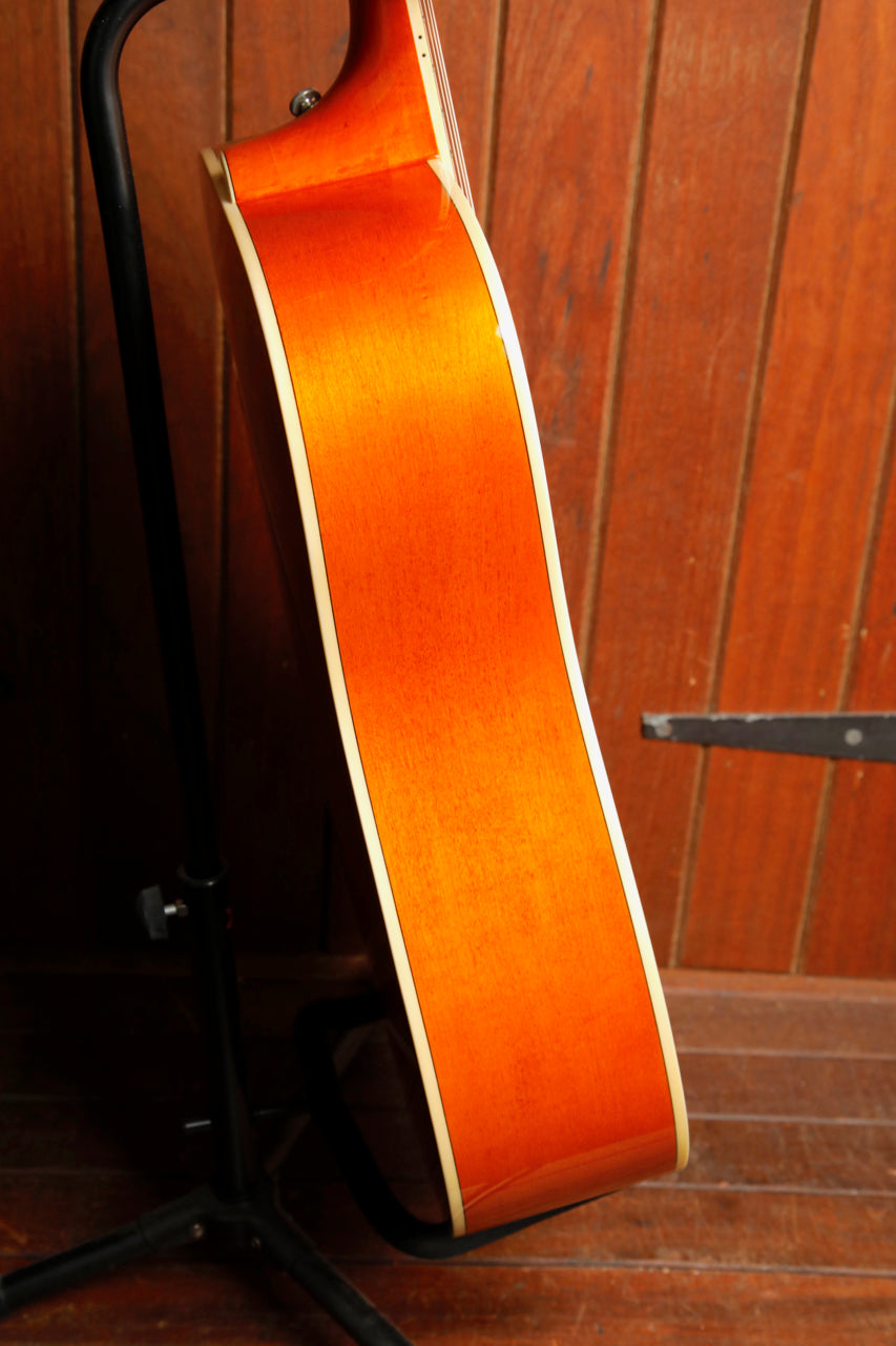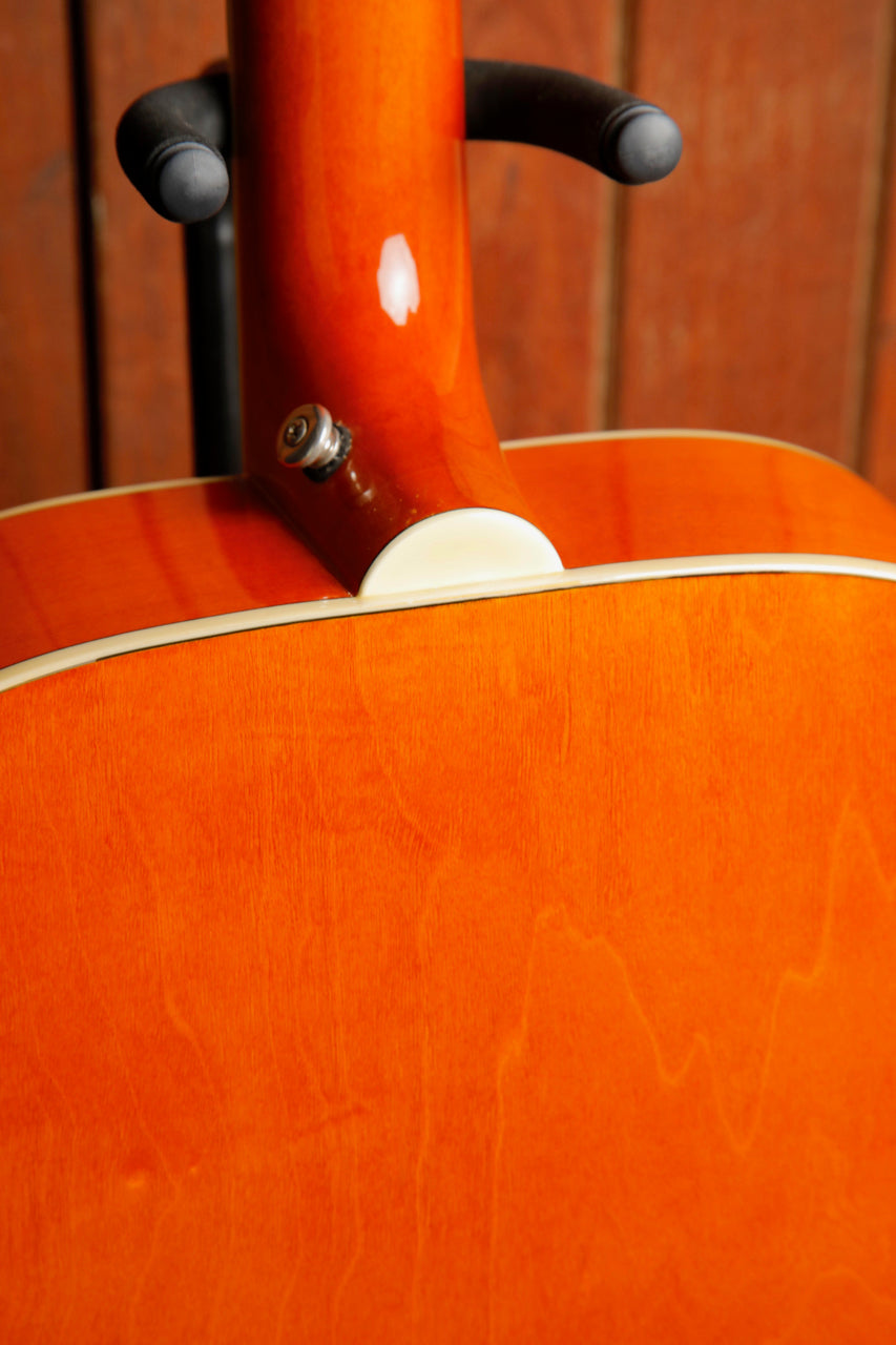This guitar shows only very light signs of wear including pick scratches on the pickguard, some light marks on the back and some patina to the machine heads. A great playing acoustic with minimal fret wear.