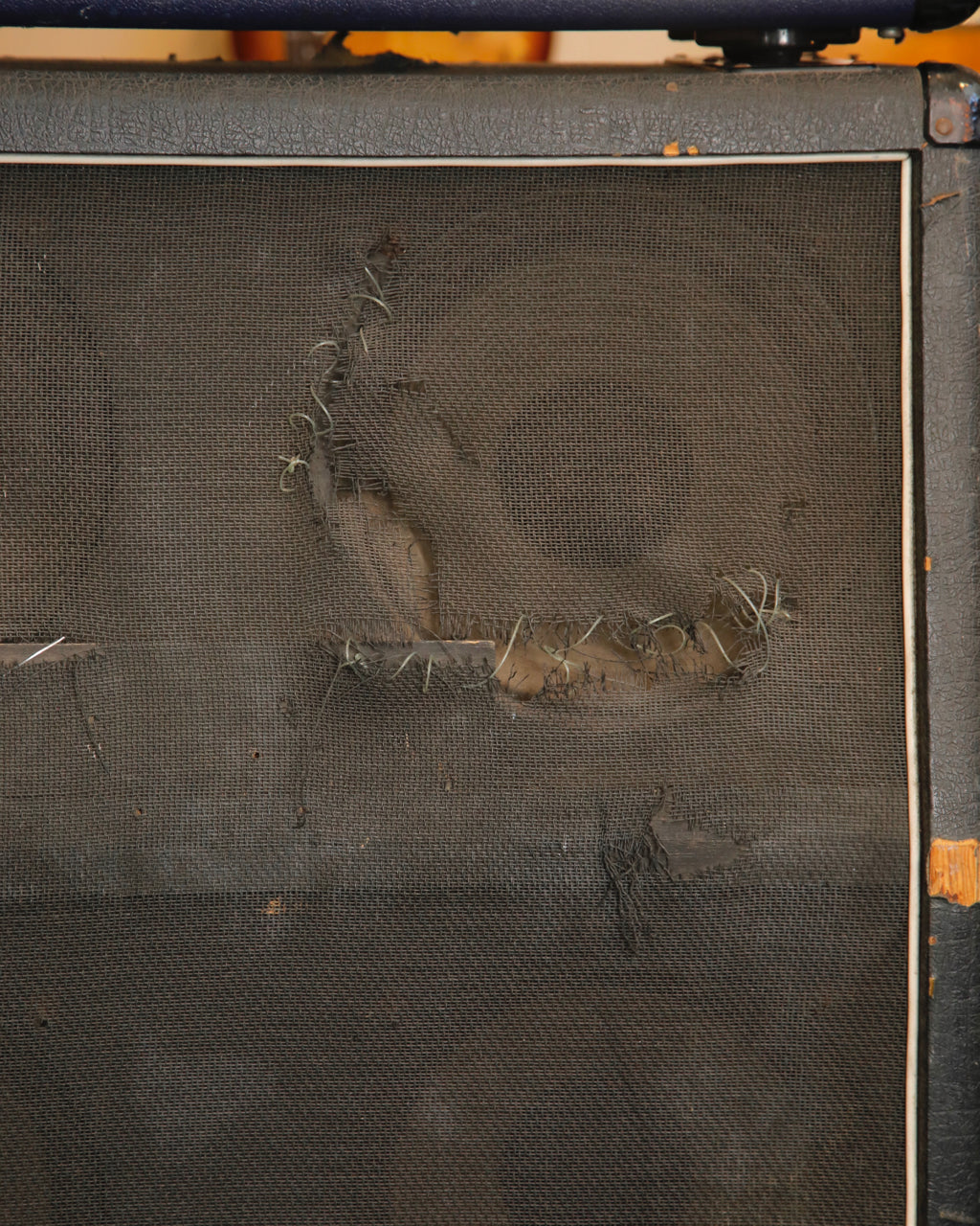 Although this cabinet looks rough, it sounds great with its original Celestion speakers.