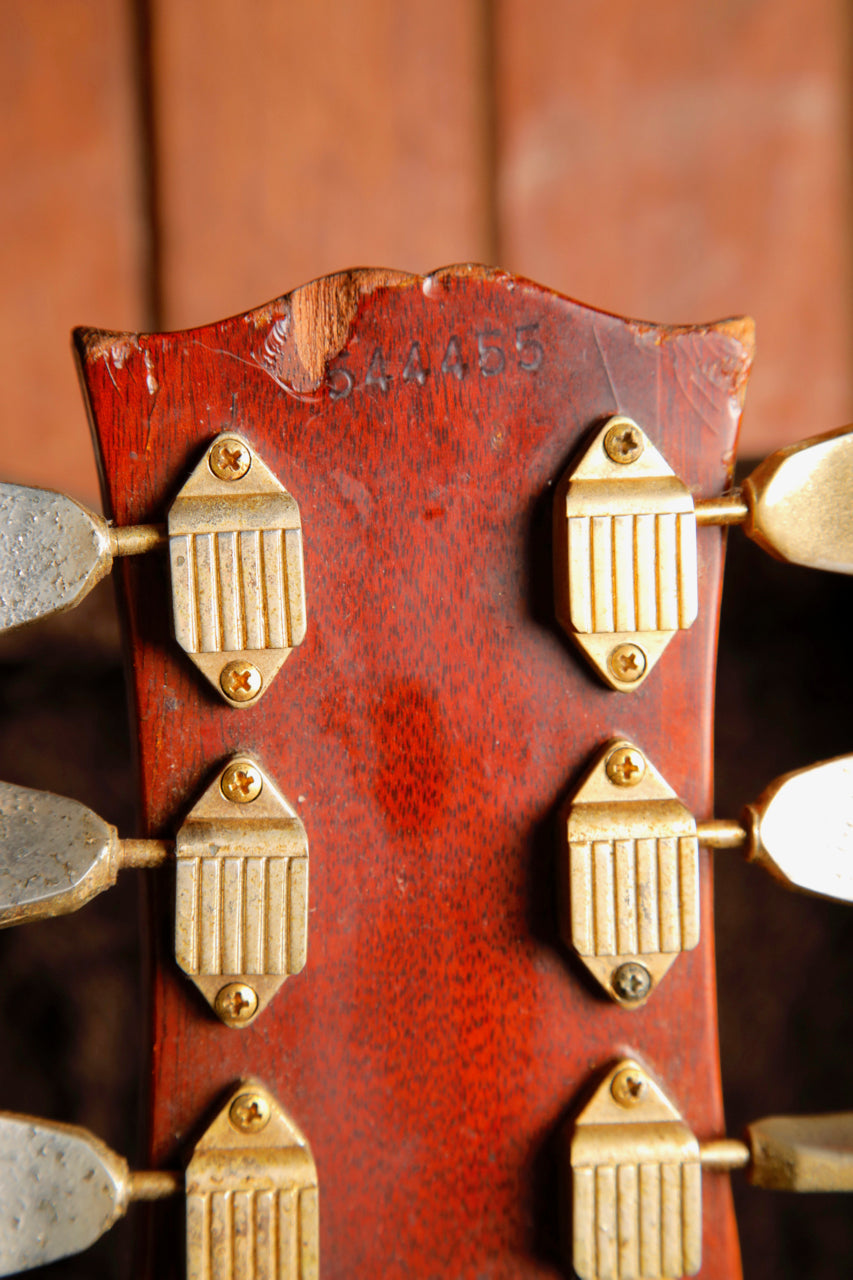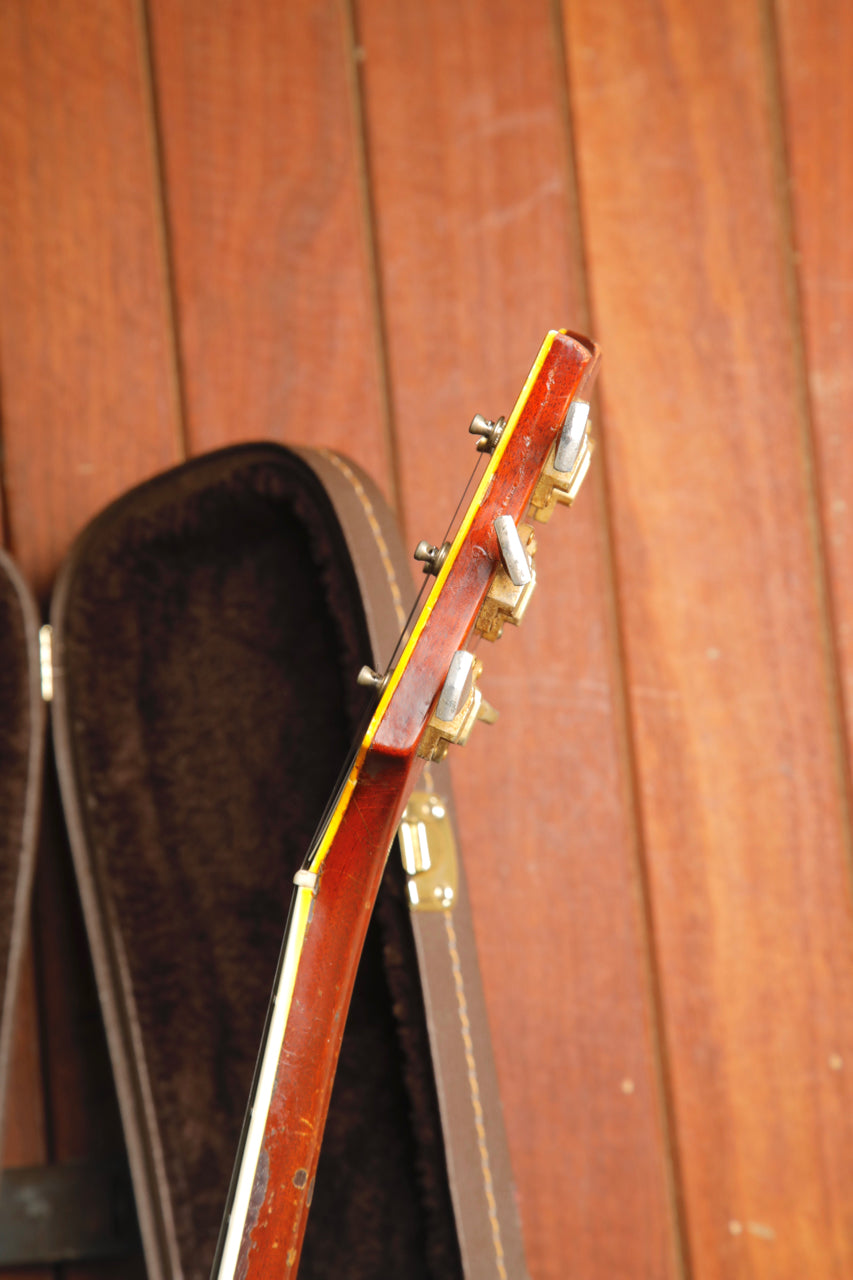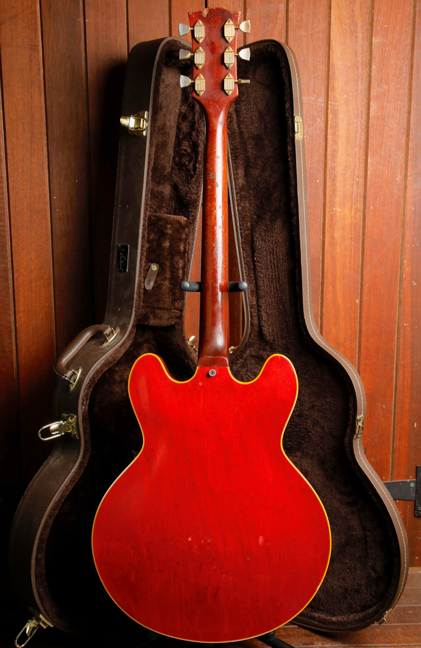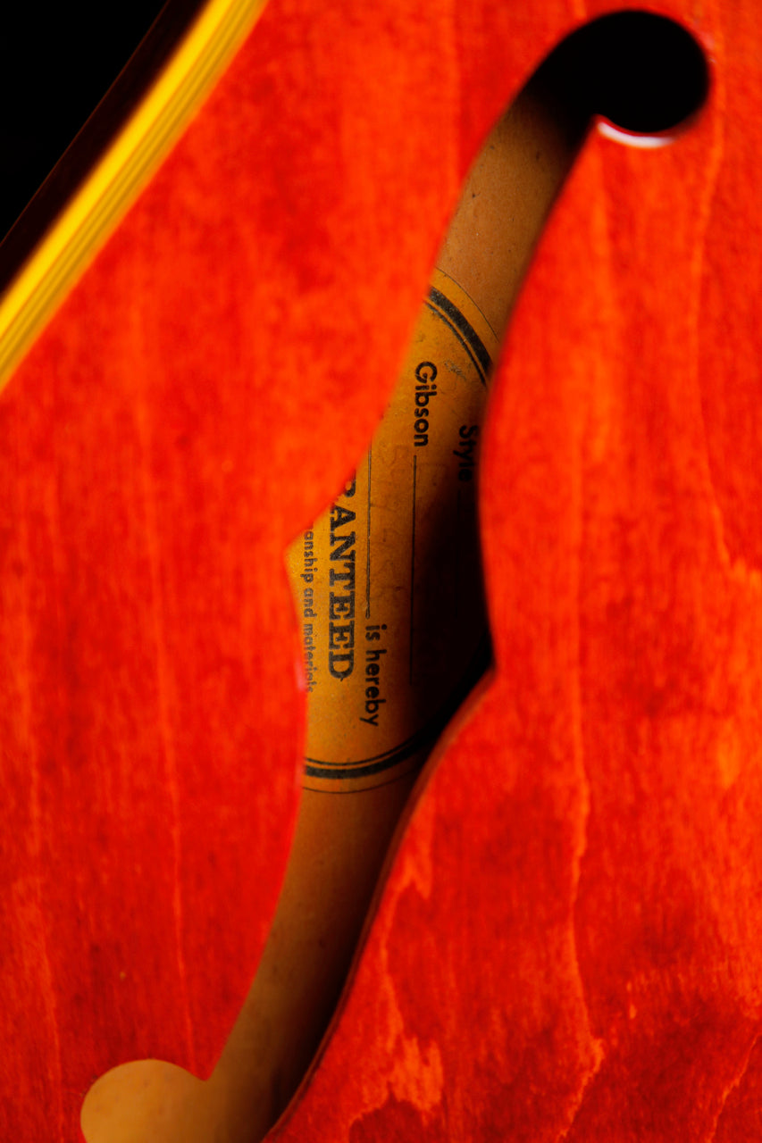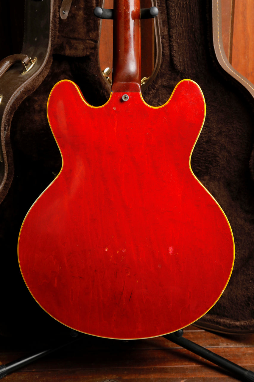 This guitar is in good player-grade condition with some obvious dings and scratches as pictured. The Maestro tailpiece is also missing its tremolo arm and the frets show significant wear as pictured.