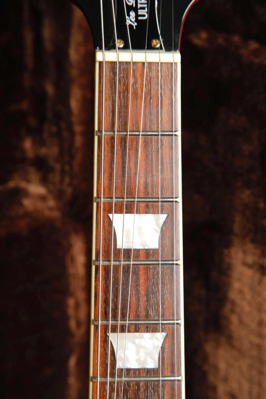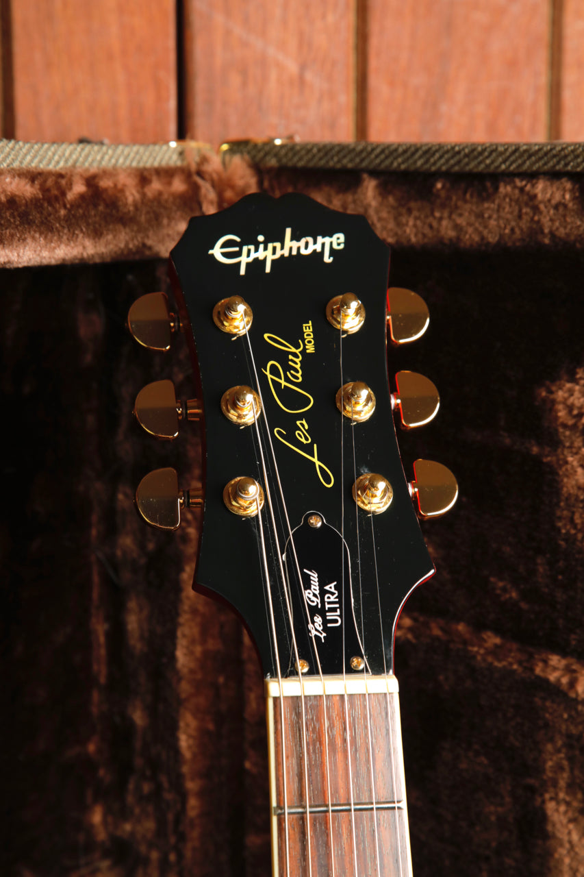 Pre-owned in excellent condition, this Epiphone Les Paul Ultra features a Cherry Sunburst finish over a quilted maple veneer. Gold hardware and a bound rosewood fretboard finish this guitar off.