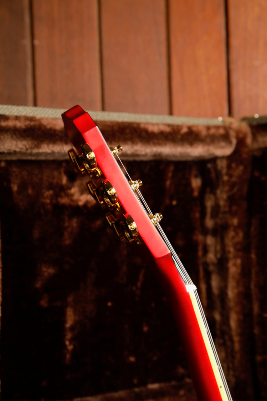 There are minimal signs of wear on this guitar with tiny marks and patina from minimal use. The frets are also in great condition with minimal wear.
