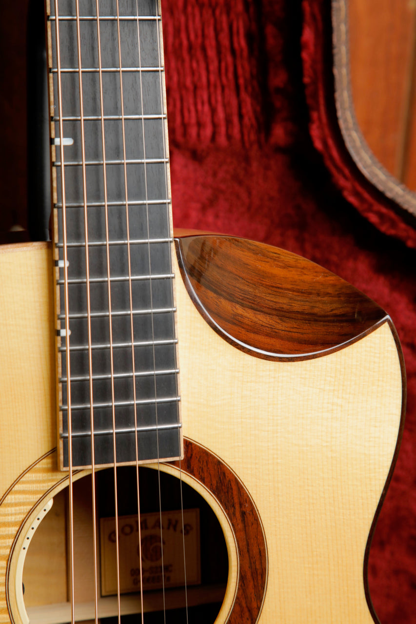 Here is a very nice acoustic guitar which features some striking timbers and finishing with a tone to match! This Gomans 000-23HC is in excellent pre-owned condition and features very unique in it's styling. It also comes equipped with an L.R. Baggs pickups system.