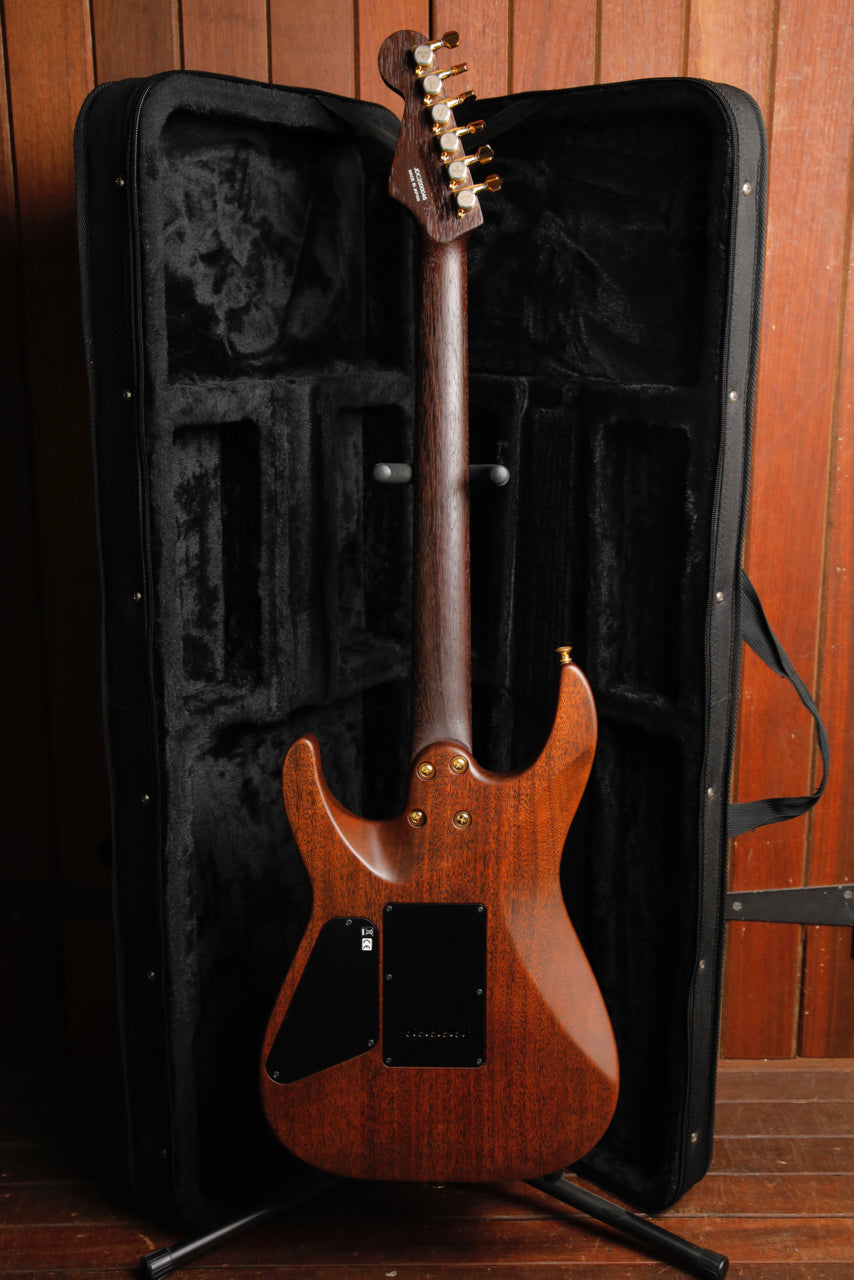 Harkening back to the late '80s when Charvel® guitars were manufactured exclusively in Japan, we introduce the all-new MJ Series DK24 HSH 2PT E Mahogany with Figured Walnut. Attentively crafted in Japan and exquisite in style, the MJ Series blends Charvel's unparalleled legacy of designing high-performance instruments with an assortment of top-end features.