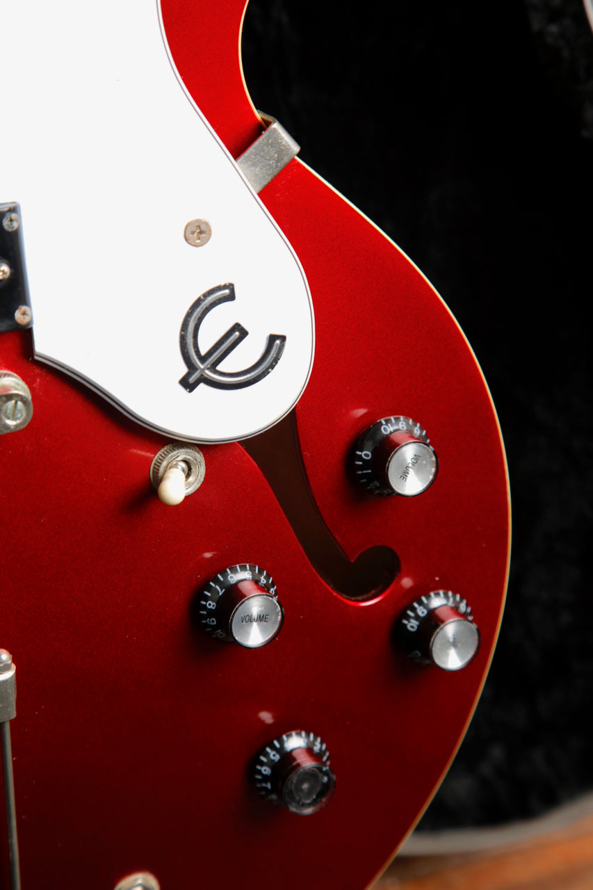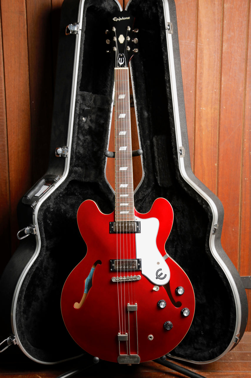 Pre-owned in excellent condition, this Epiphone Riviera is finished in a Sparkling Burgundy and is fitted with a pair of Epiphone PRO Mini Humbuckers. This guitar is playing nicely after a fresh setup and sounds great.