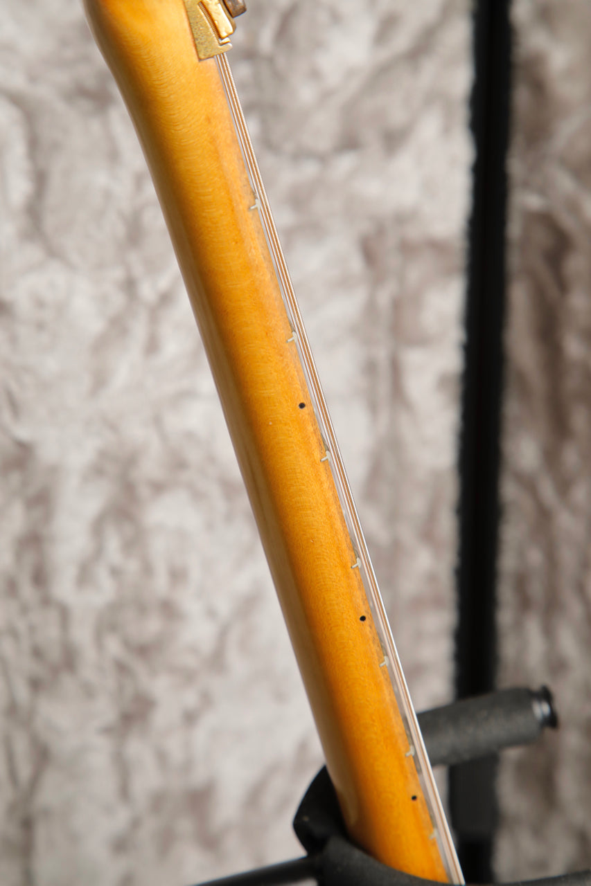 There are signs of wear and age with some scratches and patina to the gold hardware. The frets show a small amount of wear consistent with age and it is playing nicely.