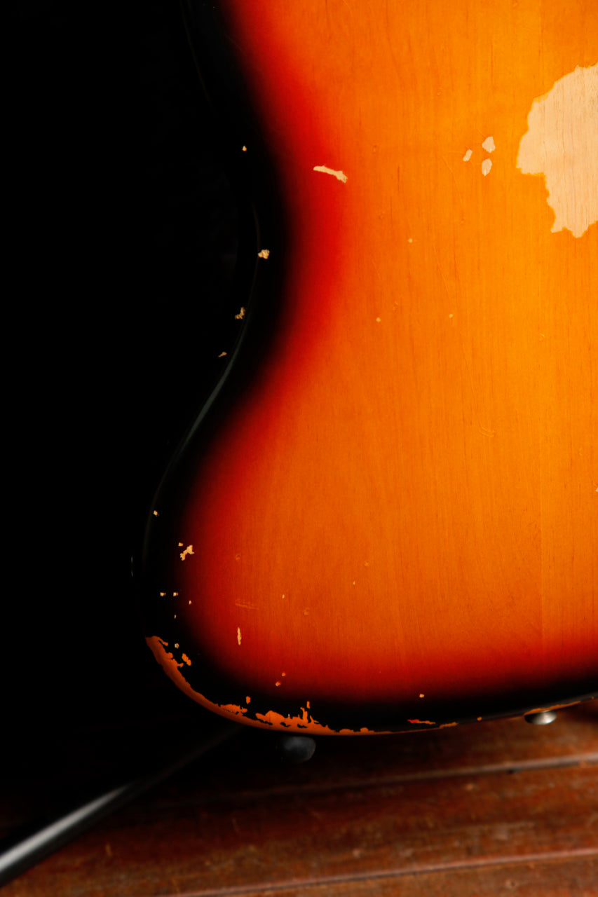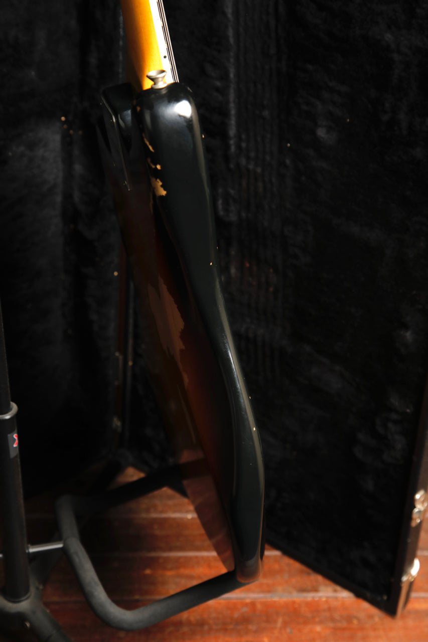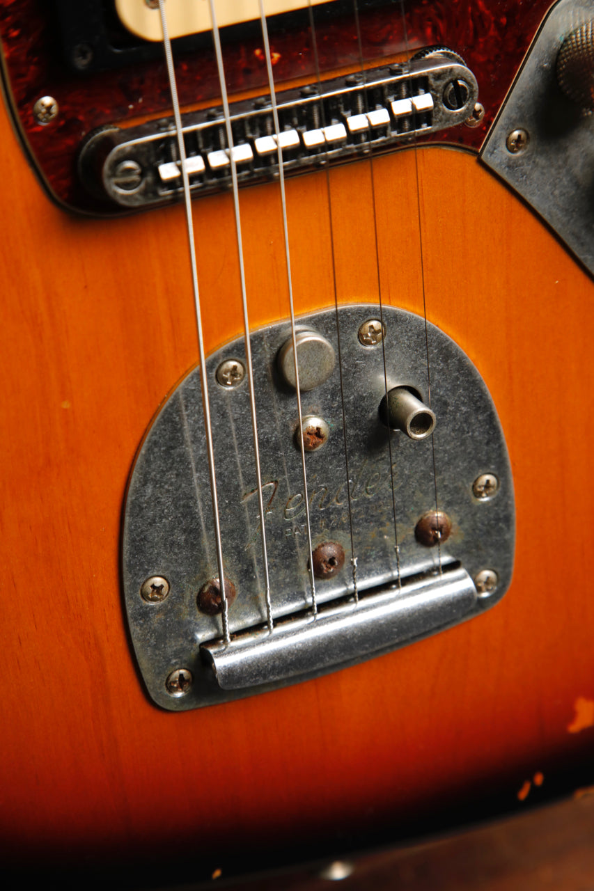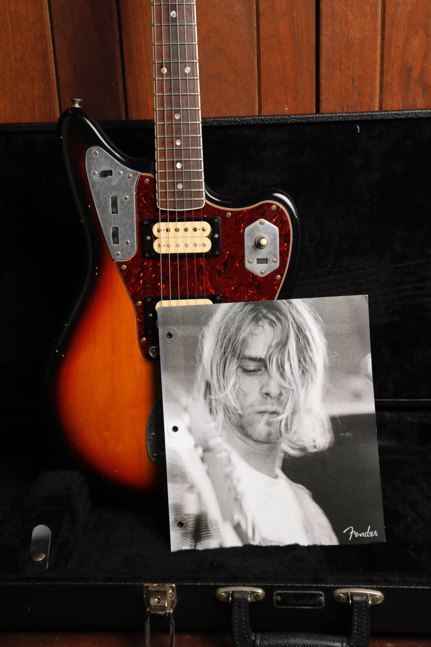 Return to the dark intensity and huge guitar sounds of the grunge rock movement with the Kurt Cobain Road Worn Jaguar, meticulously modeled on the battered and highly unusual 1965 Jaguar that Cobain wielded during the heady early-'90s era when Nirvana ruled rock and led a musically stunning and culturally subversive movement. Fender has reproduced Cobain's battle-scarred left-handed Jaguar down to the last unusual detail, including its worn finish, dual humbucking pickups and unusual electronics and controls, which were already in place when Cobain acquired the guitar in summer 1991. Available in right- and left-handed versions.