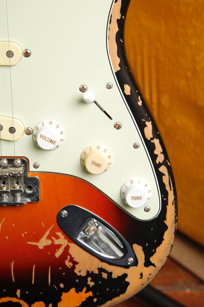With its well-worn finish and bold tones, the Mike McCready Stratocaster® resonates with the soulful essence of the iconic Strat that has powered Pearl Jam's chart-topping hits and transcendent live performances across countless studios and stages.