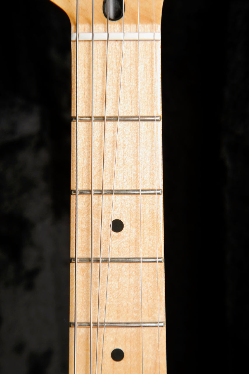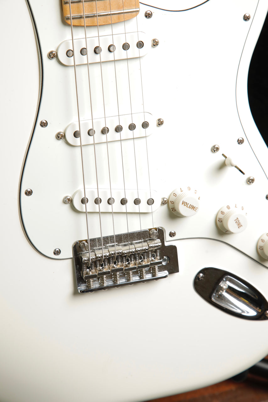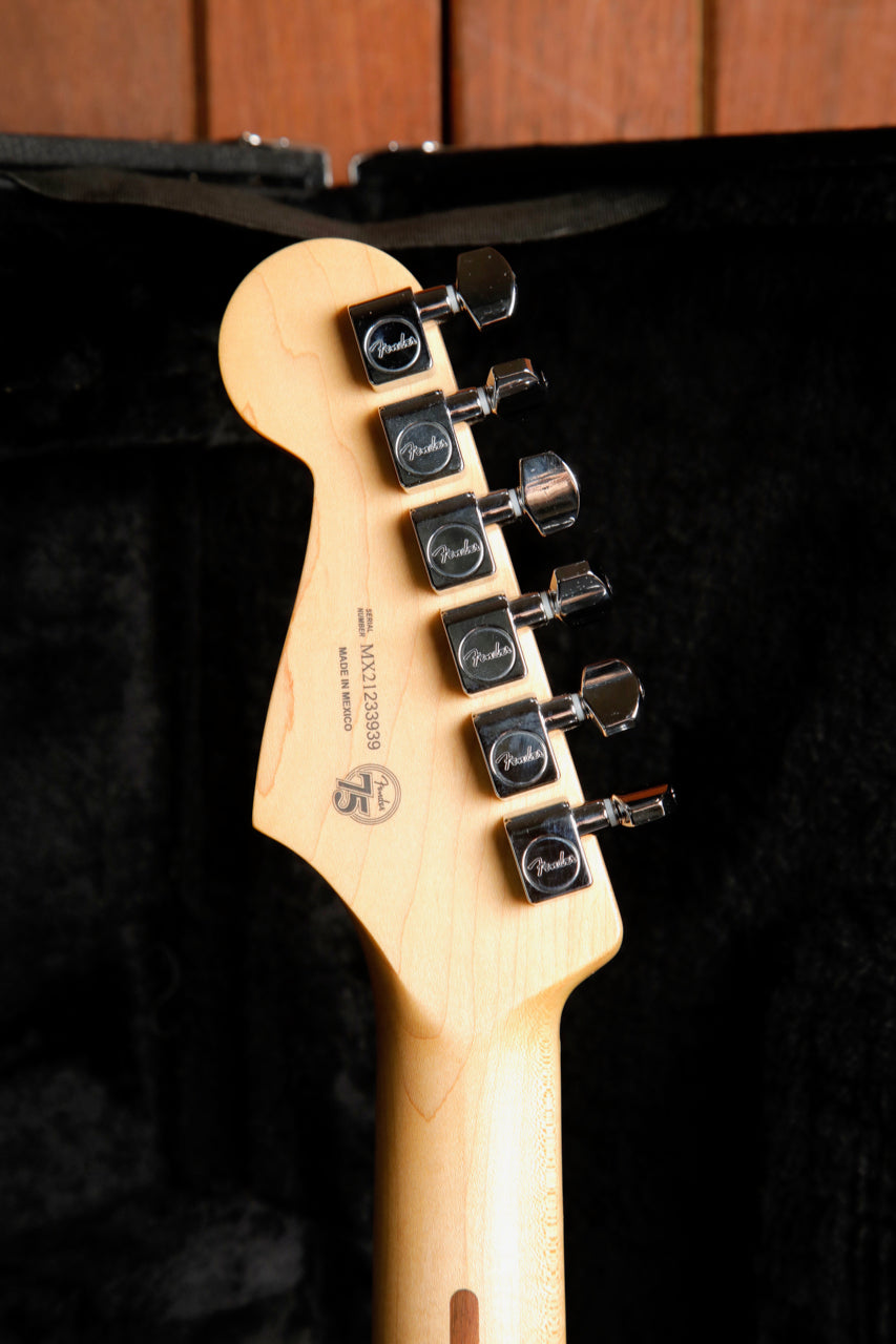 Respecting our heritage while maintaining our innovative spirit, the power trio of Player Series single-coil pickups are crisp and articulate—it’s authentic Fender tone with a modern edge. The “Modern C”-shaped maple neck’s comfortable contours and smooth finish are ideal for almost any playing style. By adding a 22nd medium jumbo fret to the contemporary 9.5”-radius fingerboard we’ve made it easier to express yourself musically. The updated 2-point tremolo design has smoother travel for enhanced playing feel while simultaneously giving you rock-solid tuning stability since there’s less friction against the posts. Other features include master volume and tone controls, a 5-way pickup switch, 3-ply pickguard, synthetic bone nut, dual-wing string tree, sealed tuning machines and four-bolt “F”-stamped neck plate that marks this instrument as the real deal—as Fender as it gets.