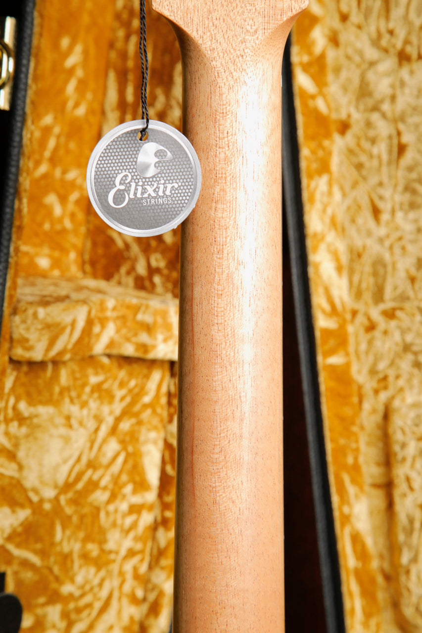 The top bracing is fully scalloped and includes the laser cut bridge plate originally developed for the 75th Anniversary model, designed to increase strength without adding weight.