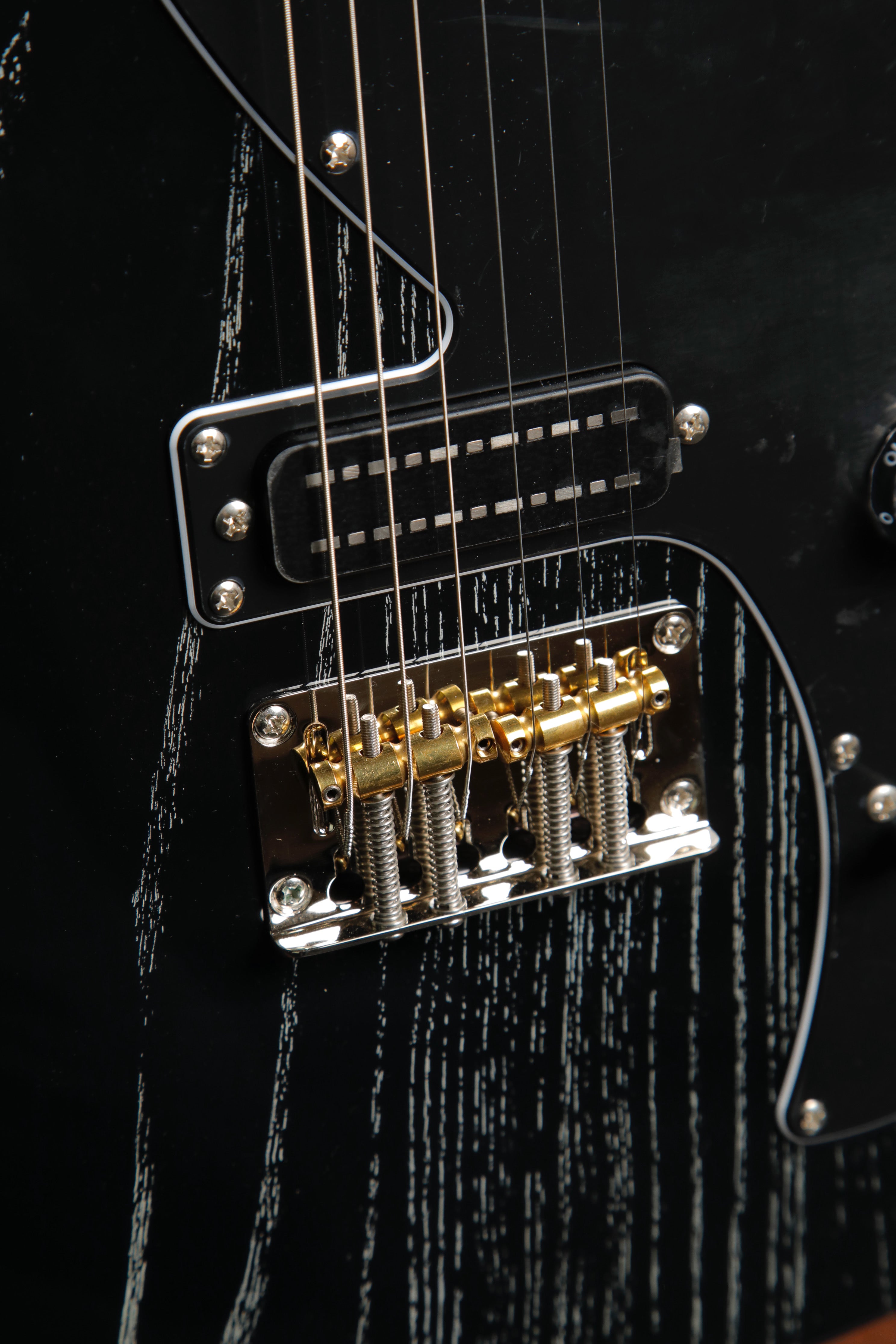 Plate-style bridge made with steel for lively tone and brass saddles for sustain.