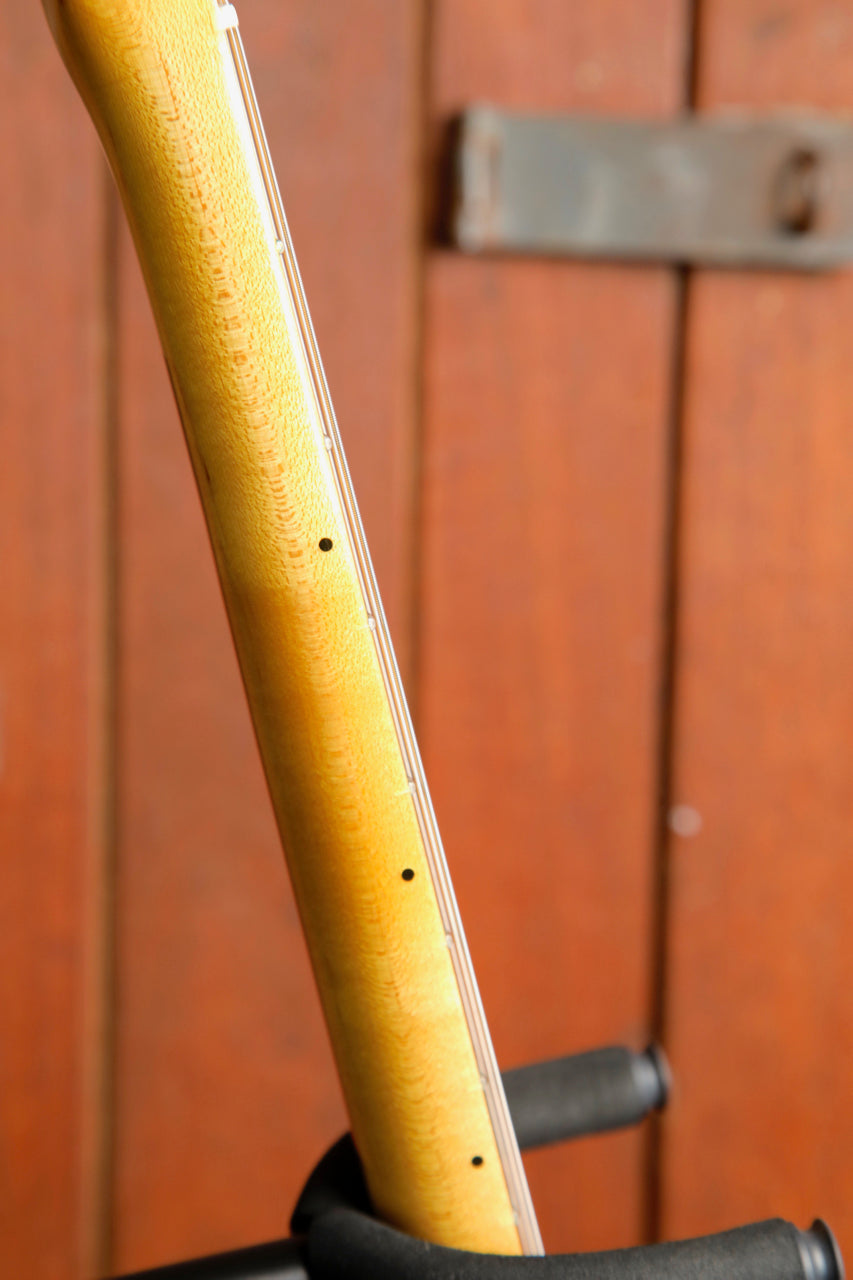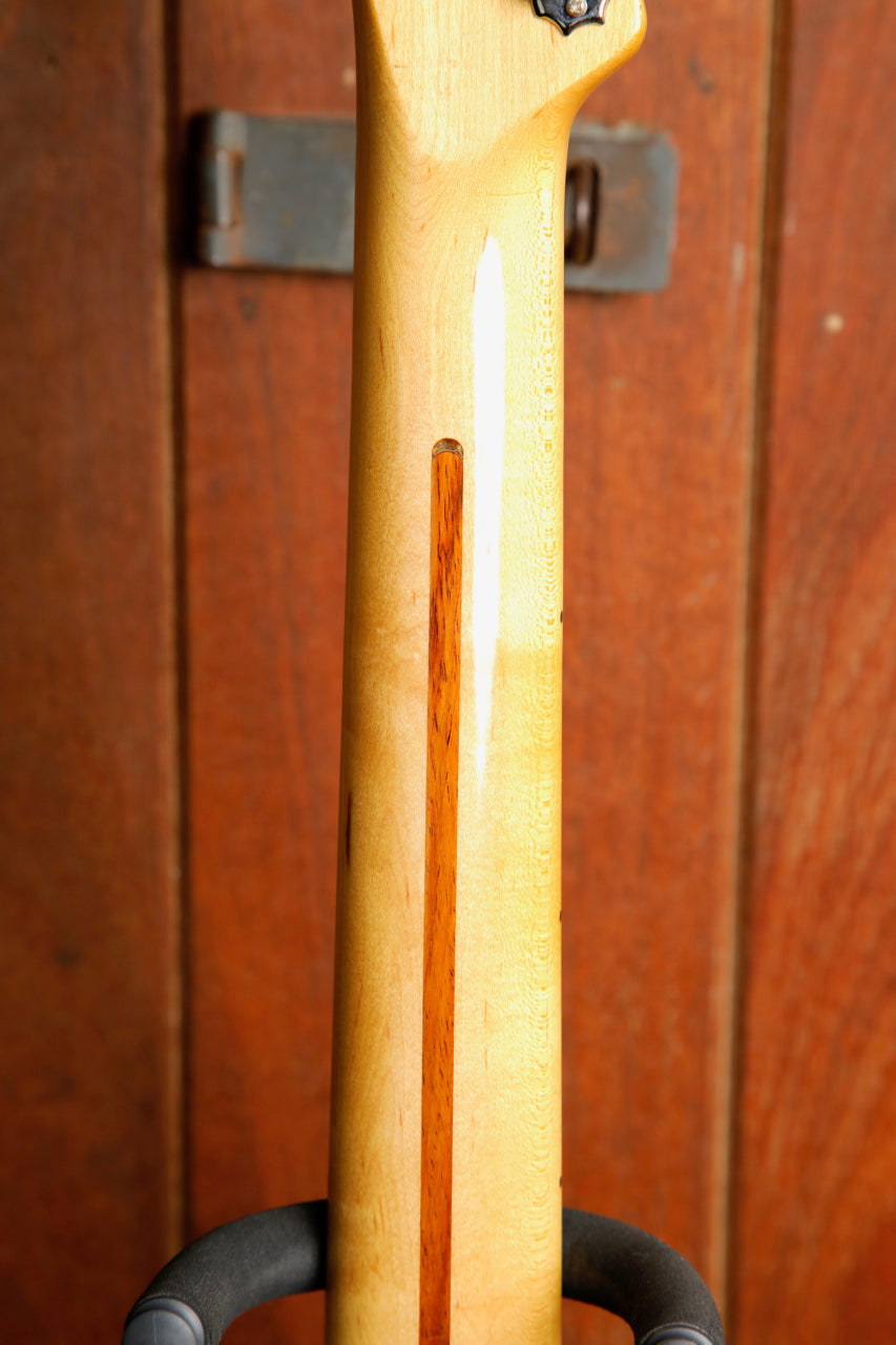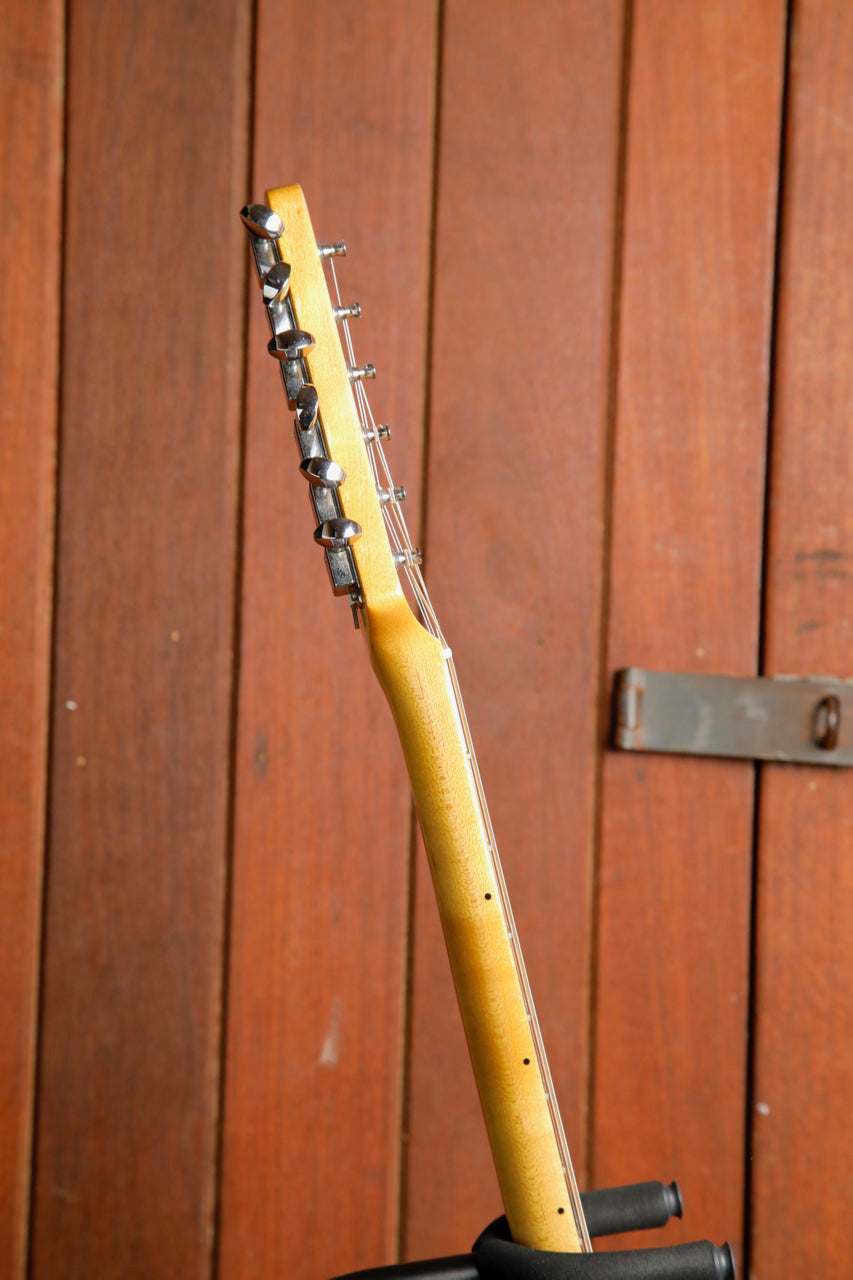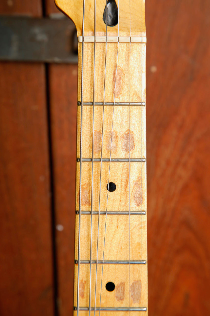 This guitar has received a well executed relic to its finish along with upgraded bridge saddles. There are other small marks from use but overall this guitar presents well. The frets are in great condition with minimal wear.