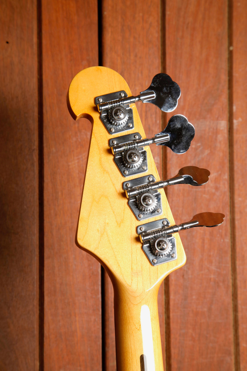 P style bass! Solid basswood body. Select Canadian maple neck with 2 way truss rod. Rosewood fingerboard. 21 frets. 34" scale. 2 x J pickups. 2 volume and 1 tone control. Vintage chrome machine heads and bridge.