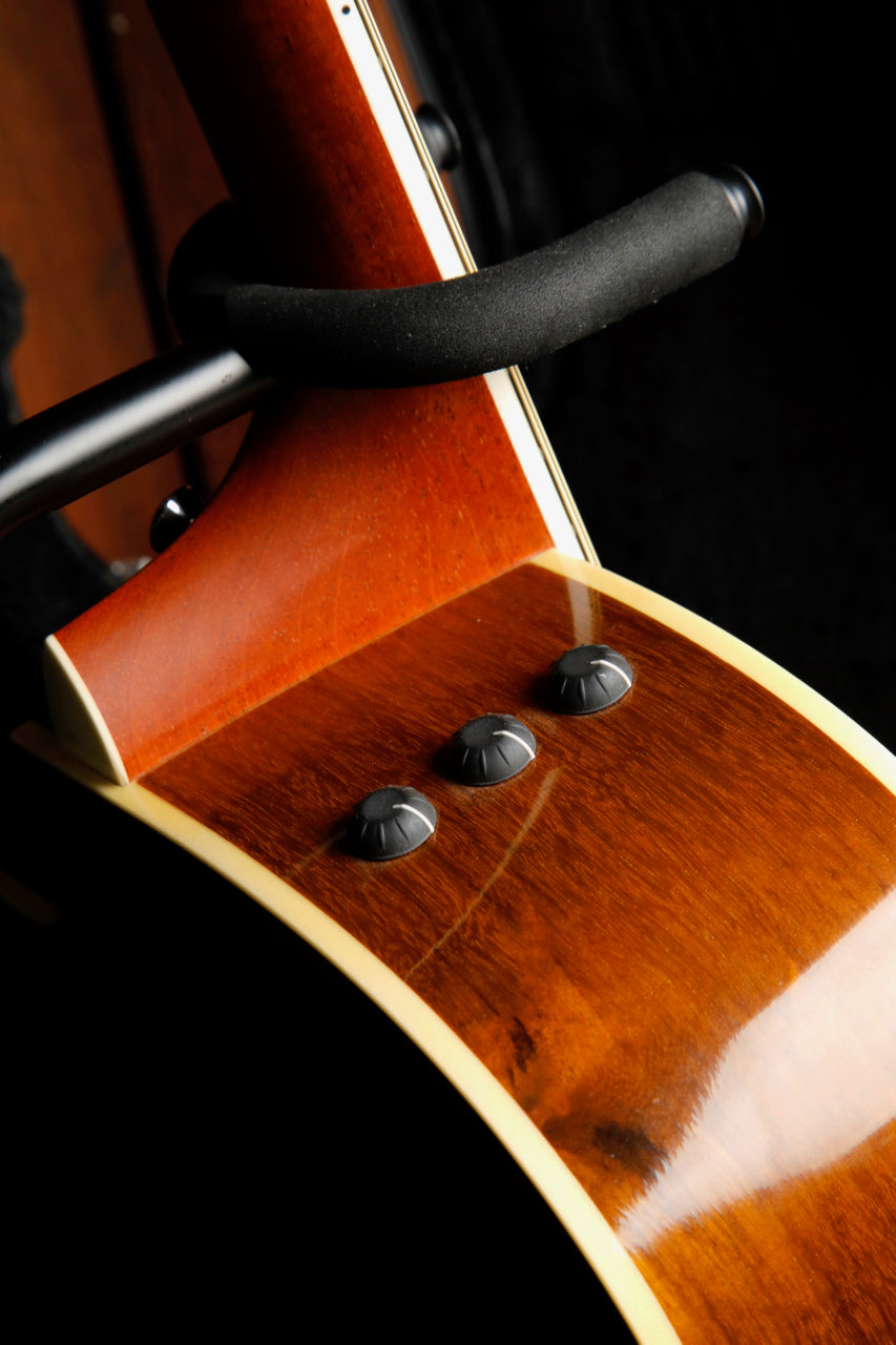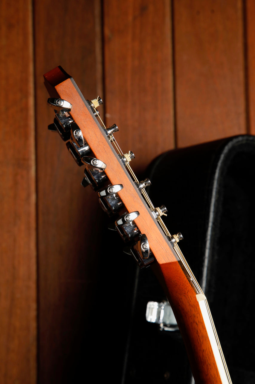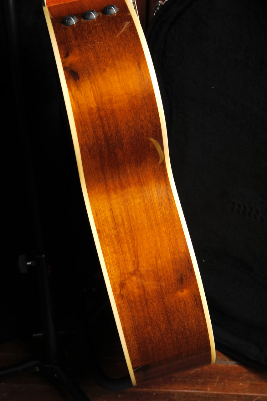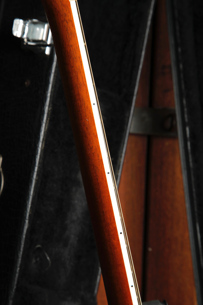 There are only light signs of wear with tiny pick scratches on the pickguard. Overall, this guitar presents very well and shows minimal fret wear.