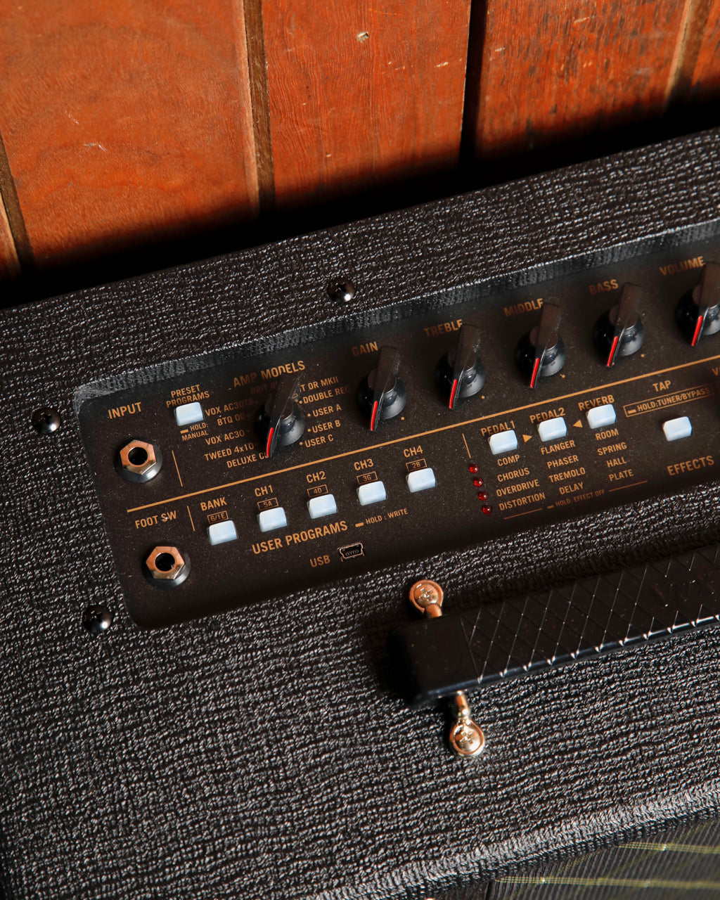 VTX amps are equipped with a USB port for simple integration with a PC, Mac, or even iOS & Android platforms and works seamlessly with the new VOX Tone Room software for deep editing of your favorite amp models, effects and presets! Tone Room is available to download on your PC, Mac via the Support tab of this page and is also available for your iOS and Android devices via the App Store or Google Play!
