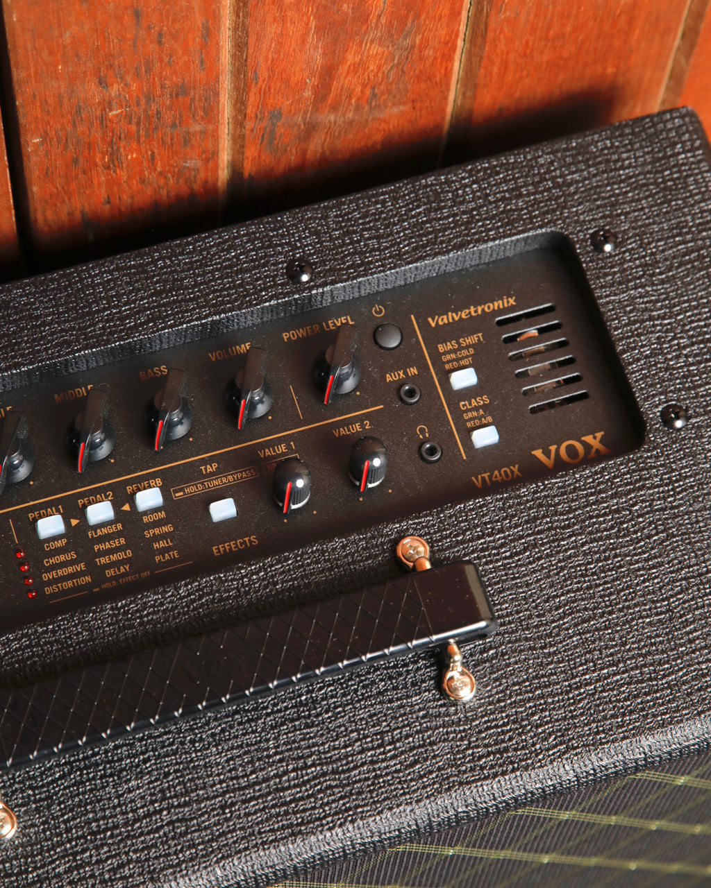 The VT40X features a brand new modeling engine and sounds even better than ever! By using VET (Virtual Element Technology), which is based on an analysis of the components and amp circuits themselves, VTX amplifiers produce the most accurate and realistic amplifier sounds to date. These new amplifiers also feature a multi-stage Valvetronix tube preamp. This preamp design incorporates authentic analog circuitry to achieve the subtle tonal adjustments and capture the nuances that are distinctive of vacuum tube amps. In addition to this clever circuitry, VTX amplifiers feature a tightly sealed cabinet and a proprietary bass-reflex designed to deliver stunning resonance. Go beyond the realm of previous modeling amps with the new VOX Tone Room editing software that lets you customize the existing amps and effects yourself, or create your own!